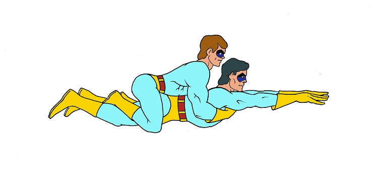 Make everyone jealous as you foil criminals and receive praise from the authorities with the Ace and Gary, “The Ambiguously Gay Duo”, Saturday Night Live Halloween costume set. Fighting crime the ambiguously gay way