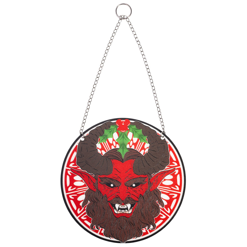 - Unique Krampus suncatcher ornament available in two styles: Krampus Hug or Krampus Face, perfect for fans of gothic, spooky, and alternative holiday décor.