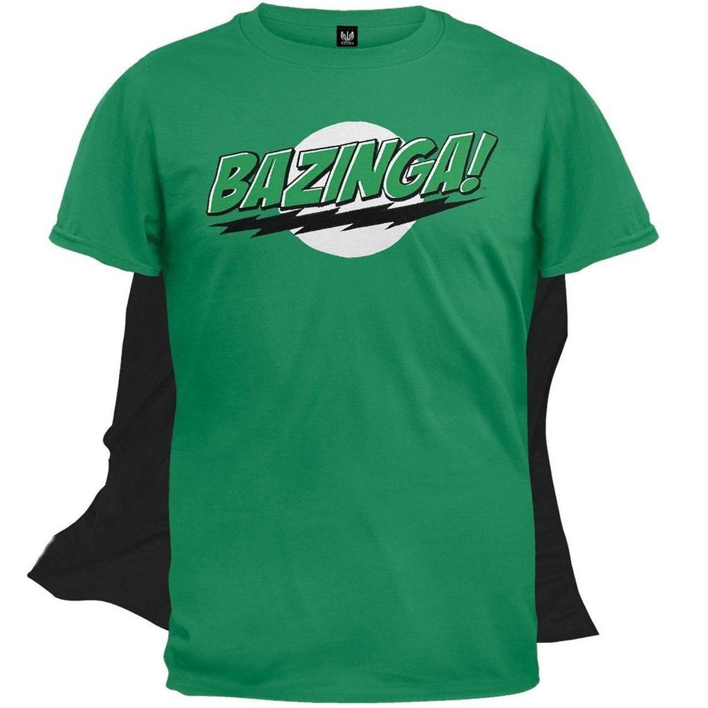 If you're a super prankster looking for the perfect costume, look no further! Bazinga is Sheldon Cooper's favorite catch phrase to use in The Big Bang Theory when he tells a joke or pull off a funny prank. If you're a fan, why not show it off in style with this officially licensed Big Bang t-shirt? This Bazinga t-shirt comes with a cape, making it perfect for a costume or just for fun!