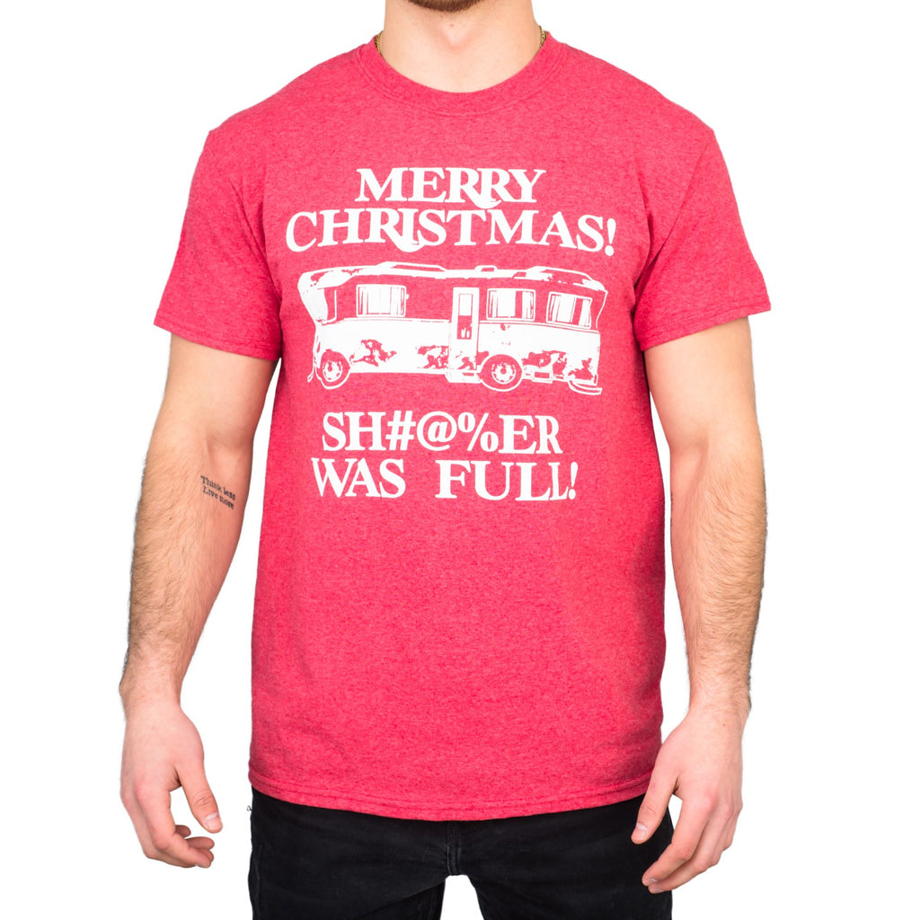 It’s memorable. It’s crass. It’s the best line from a Christmas movie ever! Pay tribute to the immortal words of Uncle Eddie with this officially licensed “Christmas Vacation” t-shirt. The red cotton tee features a print of a leaky RV alongside the legend, “Merry Christmas! Bathroom was full.” It’s the perfect attire for your next family get-together.