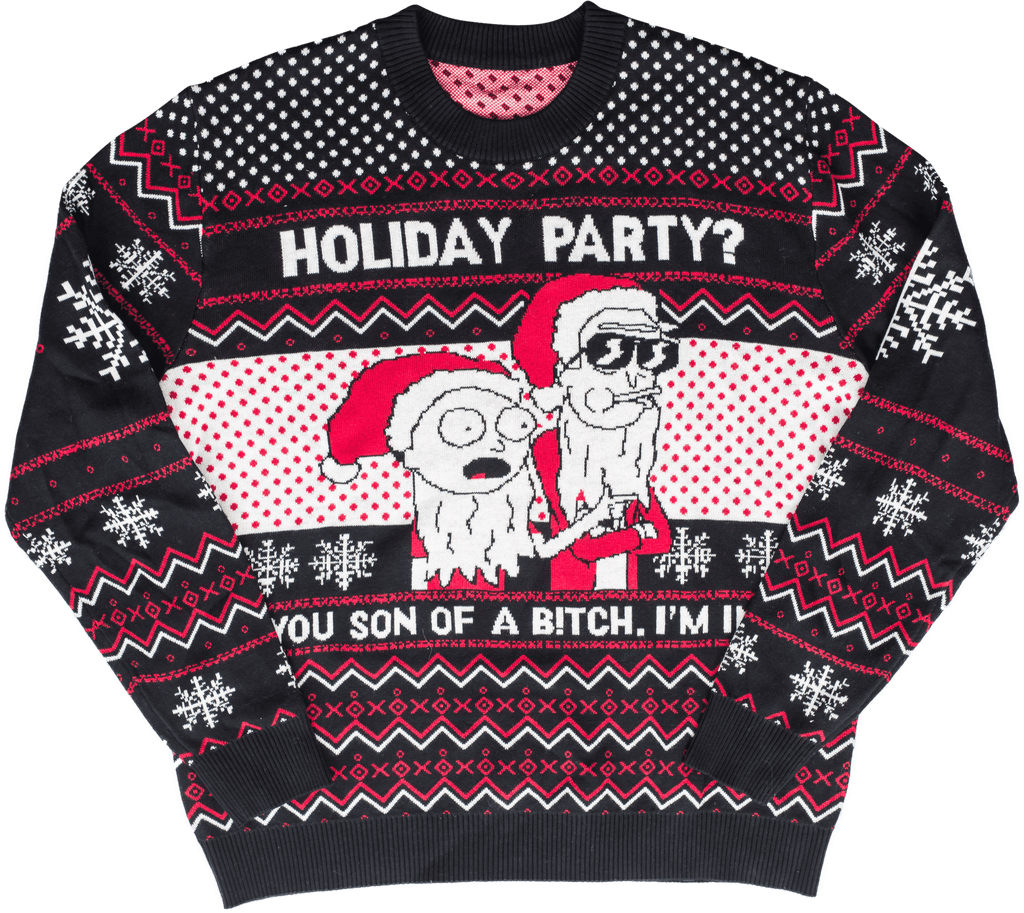 Fans of Rick & Morty that appreciate the show’s insane, over-the-top humor, will love this, over-the-top Rick & Morty ugly Christmas sweater. Featuring one of the show’s classic bits of raunchy dialogue, we don’t have a ugly holiday sweater for sale on our website that is MORE about the holiday spirit than this one. It’s important to show your sense of humor during the holiday season, so what better way to do that than with Rick & Morty?