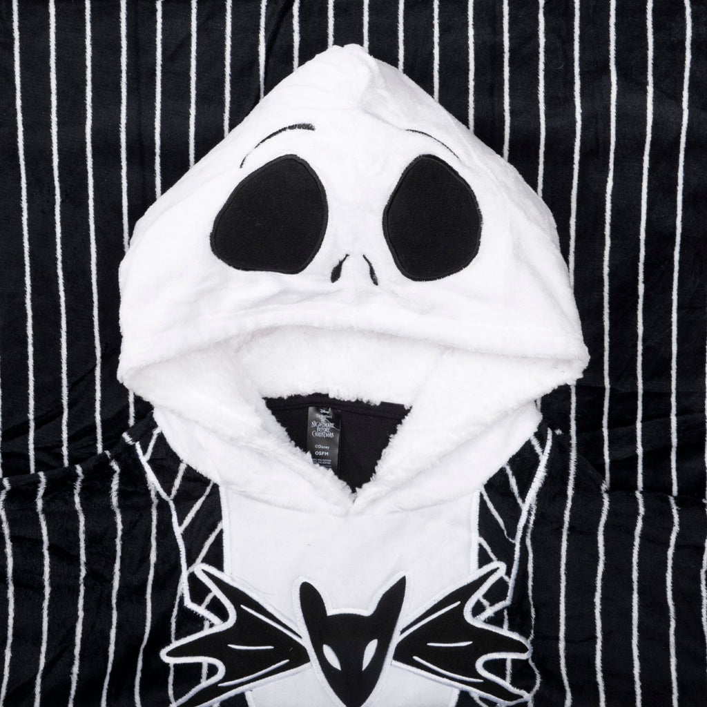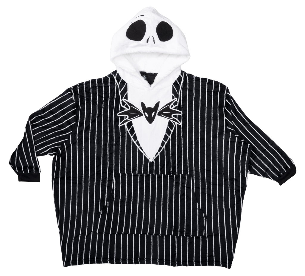 Get ready to embrace the spooky charm of Halloween Town with this Officially Licensed Jack Skellington Oversized Blanket Hoodie Poncho from The Nightmare Before Christmas. Crafted for ultimate comfort and iconic style, this unisex adult poncho hoodie features a large, detailed Jack Skellington face on the hood, bringing Tim Burton’s beloved Pumpkin King to life. Made from super-soft, plush fleece material, it wraps you in warmth whether you’re relaxing at home, watching your favorite movie, or dressing up for Halloween festivities. The oversized, one-size-fits-most design ensures a cozy, relaxed fit for all-day comfort, while the front kangaroo pockets add both convenience and style. Perfect for fans who want to combine their love of Disney’s gothic masterpiece with a dose of cozy relaxation, this wearable blanket hoodie makes a standout gift and a statement piece for lounging or spooky season fun. Stay warm, stylish, and spirited with Jack Skellington by your side.