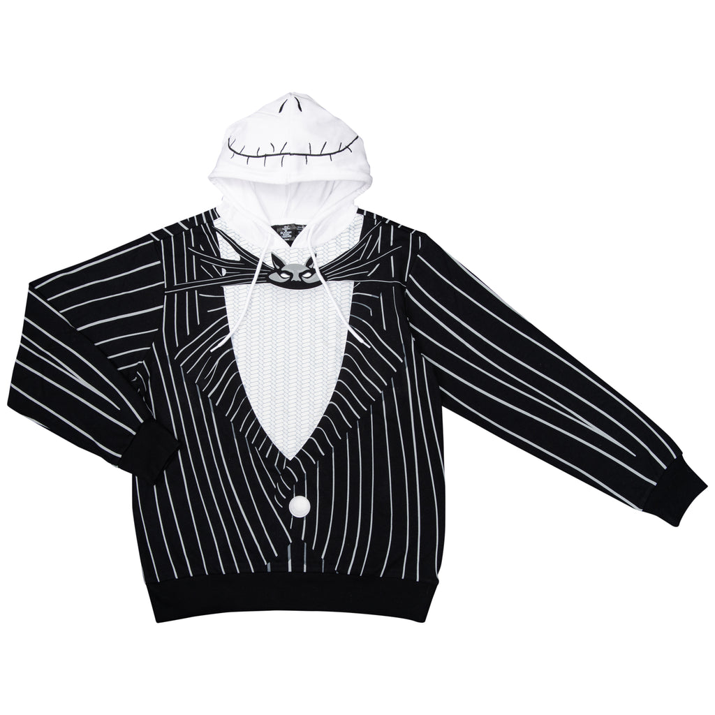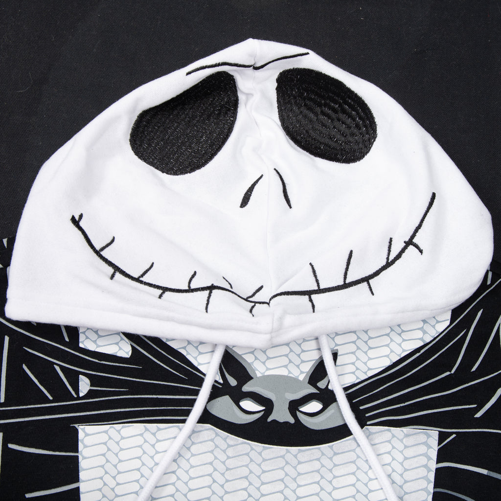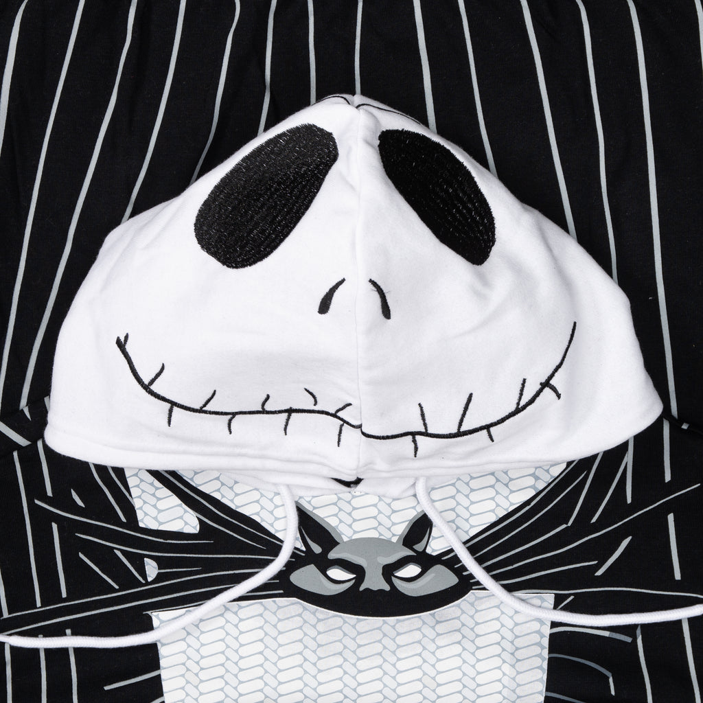 Crafted for comfort and style, this hoodie features Jack's iconic pinstripe suit design, complete with a bat bow tie graphic and a hood that perfectly captures his skeletal face. Made from soft, durable fabric, it's ideal for staying cozy during chilly nights or making a grand entrance at any fan gathering.