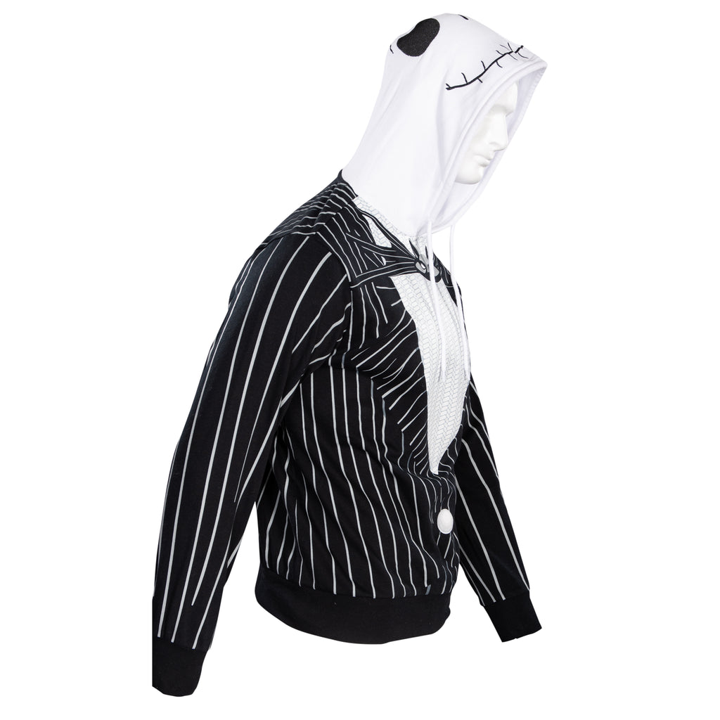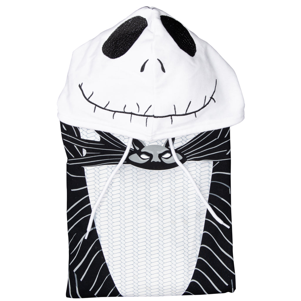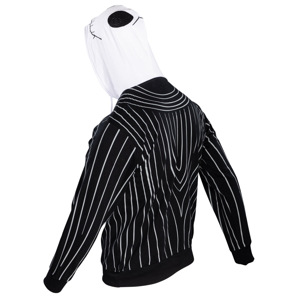 Crafted for comfort and style, this hoodie features Jack's iconic pinstripe suit design, complete with a bat bow tie graphic and a hood that perfectly captures his skeletal face. Made from soft, durable fabric, it's ideal for staying cozy during chilly nights or making a grand entrance at any fan gathering.