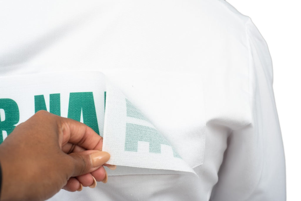 - Costume includes a white long sleeve jumpsuit with 4 pockets, a removable sublimated patch on the back for custom name or text, and a green adjustable hat.