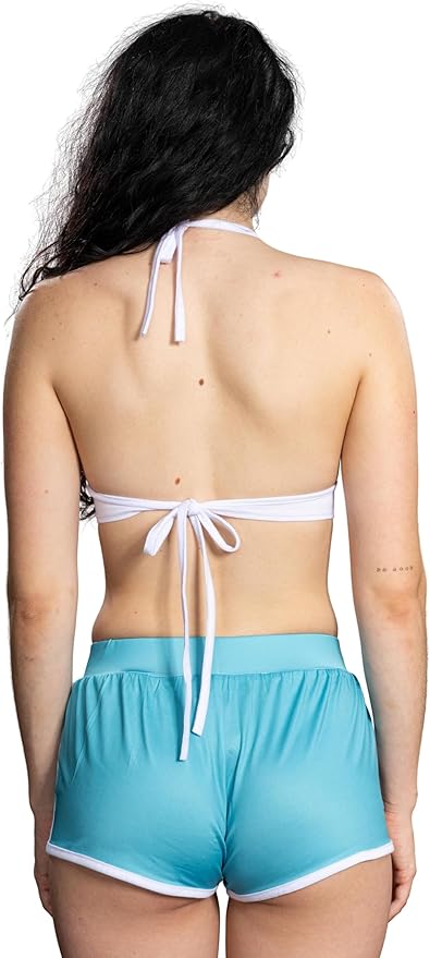 - Complete Cheerleader Costume Set: Get game-ready with this Jackie Flint inspired basketball team cheerleader costume. This set includes a white tank top and matching teal shorts, bringing your favorite movie character to life.