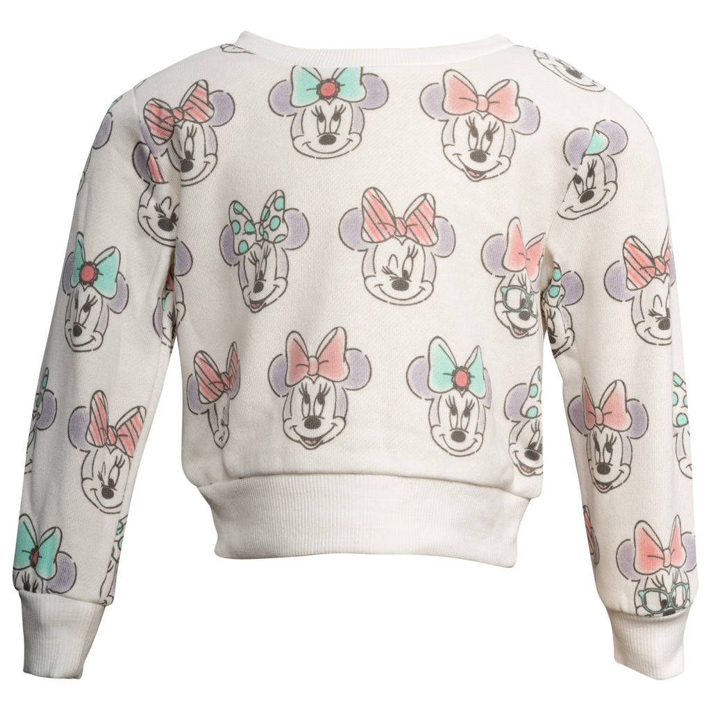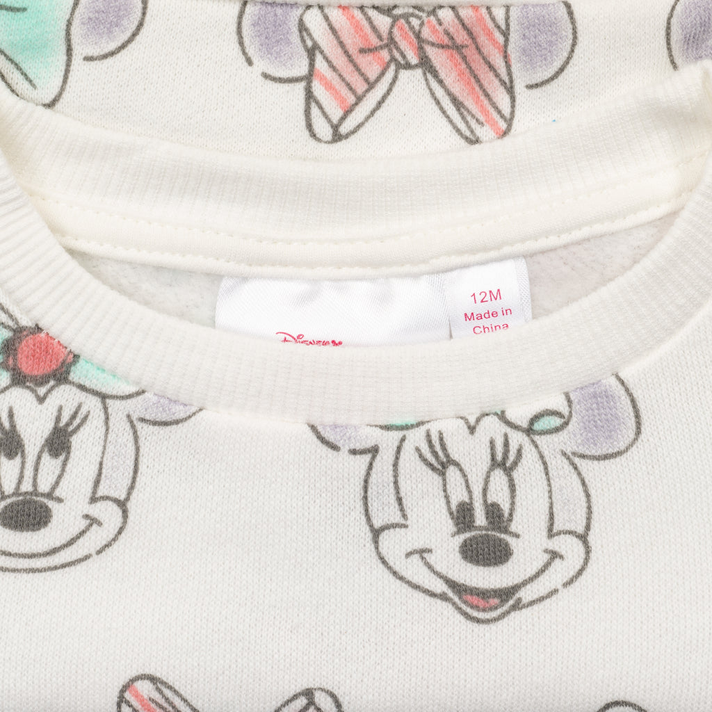 - Adorable Minnie Design: Adorned with an all-over pattern of Minnie Mouse heads, this white fleece sweatshirt is as cute as it is cozy, making it a perfect addition to your baby's outfit.
