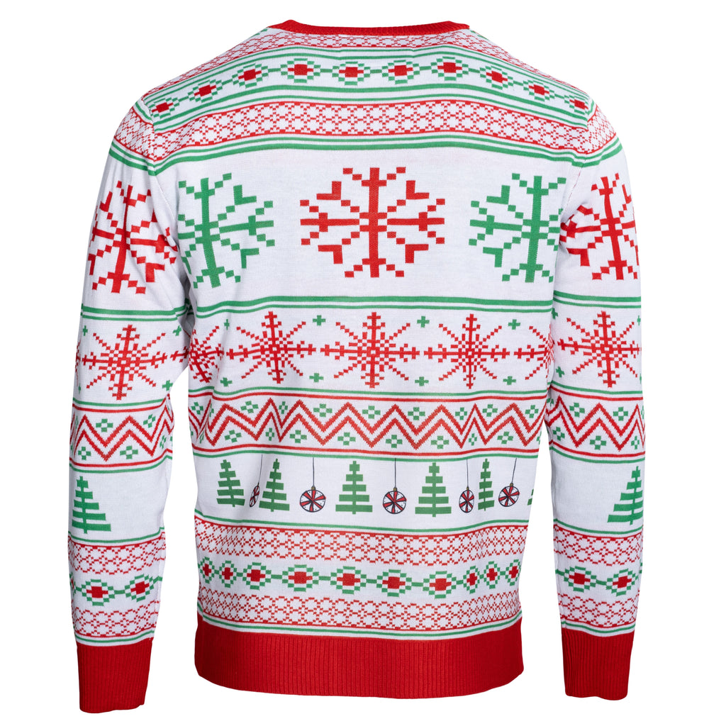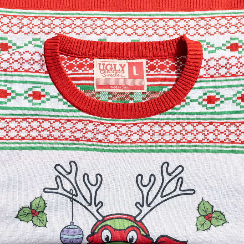 Look no further! You've just found it on an epic scale! TMNT Fans will love the hilarious use of Raphael to showcase holiday cheer while at the same poking fun at it. As it's only someone as funny as Raph who could come up with the slogan "Ho! Ho! Heroes!" Wear this TMNT ugly Christmas sweater to your next holiday party and watch as the Turtles fans in the crowd come out of the woodwork to tell you what a huge fan of the Turtles they are!