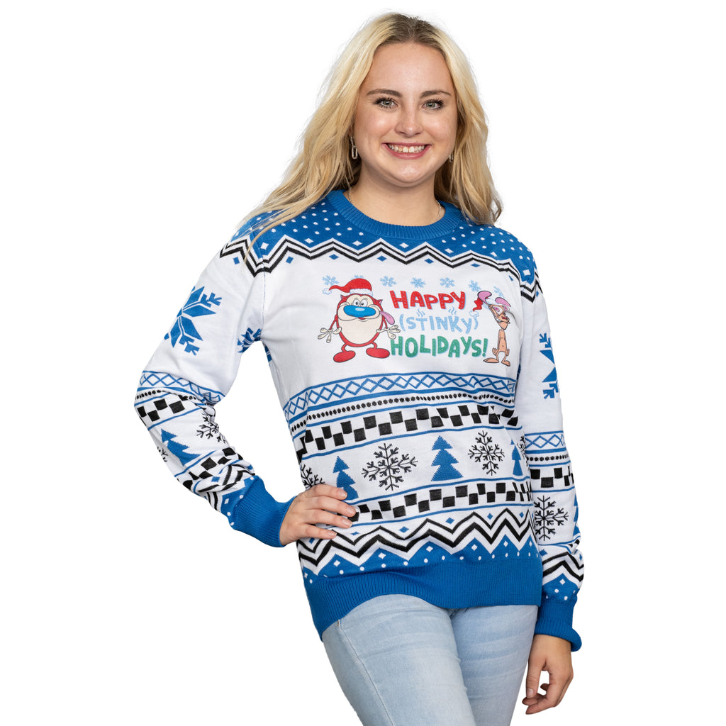 Did you grow up in the 1990s? If so, then there's a good chance that you loved Ren & Stimpy just as much as we do here at Ugly Christmas Sweater.com. Fans of the two insane Nick cartoon characters, will love this Ren & Stimpy ugly Christmas sweater because it champions the insanity of the original TV series while also bringing to memory the importance of friendship during the holiday season when spending time with loved ones is what counts the most.