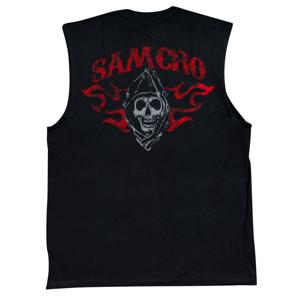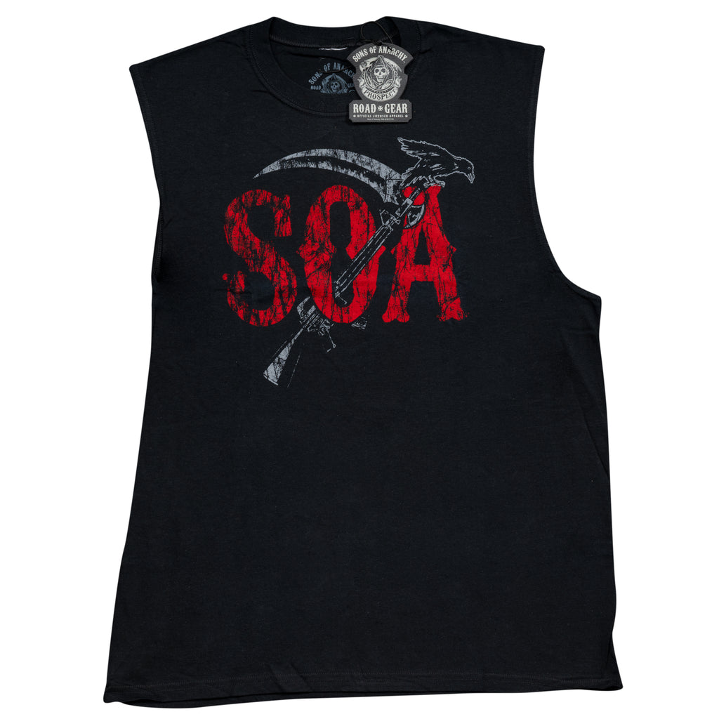 Add a touch of rebellion to your wardrobe with the Sons Of Anarchy SOA Reaper Logo Crow Black Sleeveless T-Shirt. Featuring the iconic Reaper logo and crow, this sleeveless t-shirt is perfect for any fans of the hit TV show. Stay cool and stylish while showing off your love for the Sons Of Anarchy.