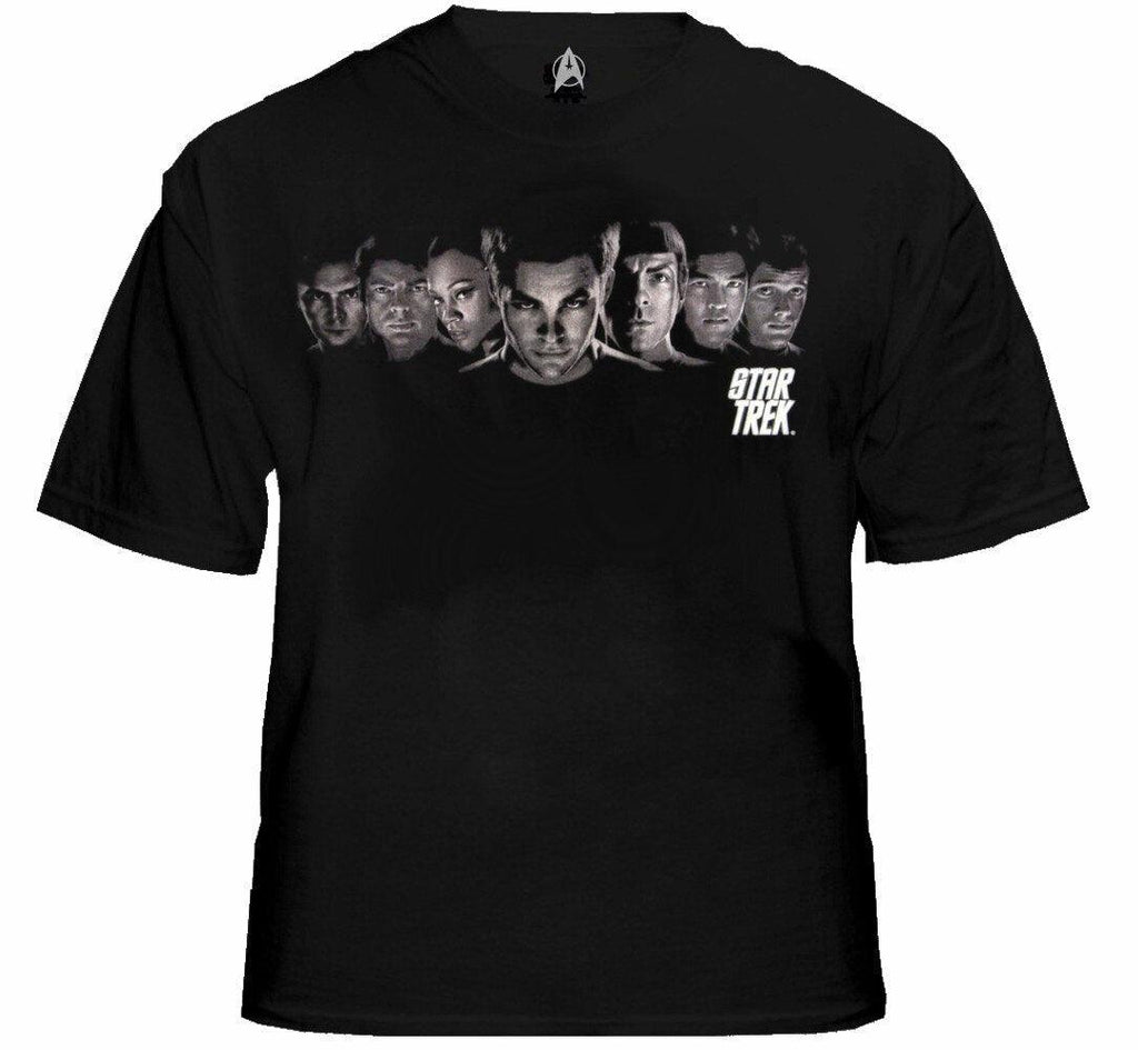 Pay tribute to the best "Star Trek" film in years with this officially licensed t-shirt featuring the crew of J.J. Abrams' Enterprise. The sleek black tee includes the new iterations of all the classic Trek characters from Captain Kirk on down.