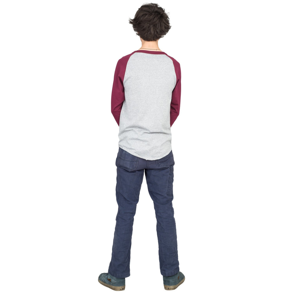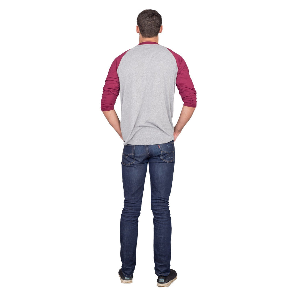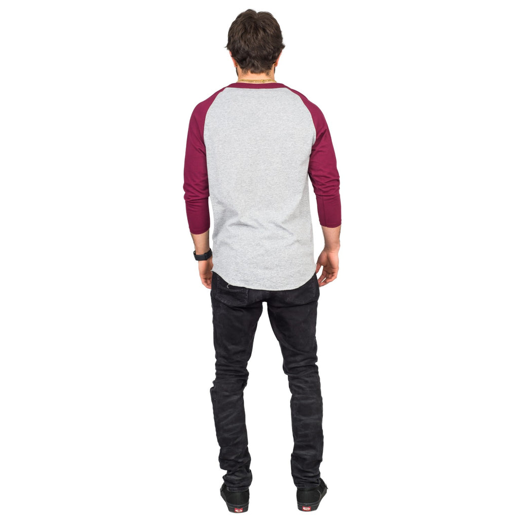 - Stylish Raglan Design: Features a classic raglan style with contrasting gray body and maroon sleeves, providing a sporty and casual look.