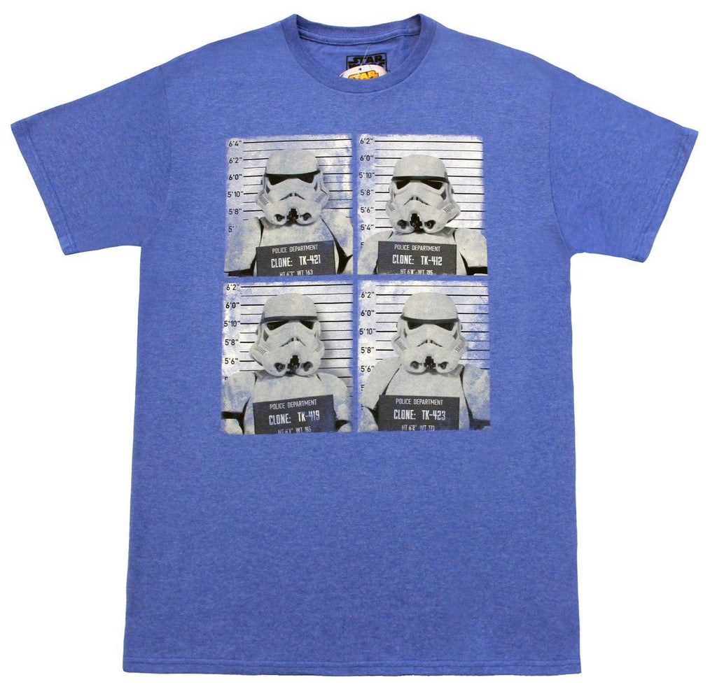 If you like Star Wars, and even more, if you like fun parodies of Star Wars, then you'll like this hilarious, officially-licensed Storm Trooper Line Up Mug Shots T-shirt. This fun, 100% Cotton t-shirt features four shots of Imperial Stormtroopers getting their mug shots taken.