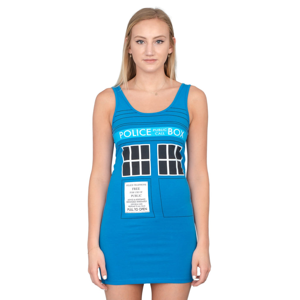 If you’ve ever wanted to travel throughout space and time, you might want to consider investing in a TARDIS. What is that? Well, it stands for Time and Relative Dimensions in Space, but it’s really more like a Police Box that can do wibbly wobbly, timey wimey stuff. Fans of the hit BBC show Doctor Who will know all about it! Show some love for your favorite sci-fi series with this officially licensed TARDIS tank dress, featuring the likeness of everyone’s favorite time machine. Let the world know that you’re ready to travel through time and space with this awesome Doctor Who tank dress!