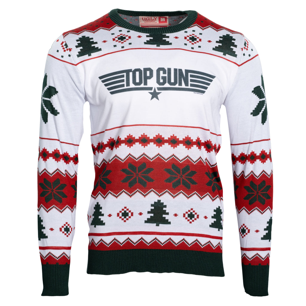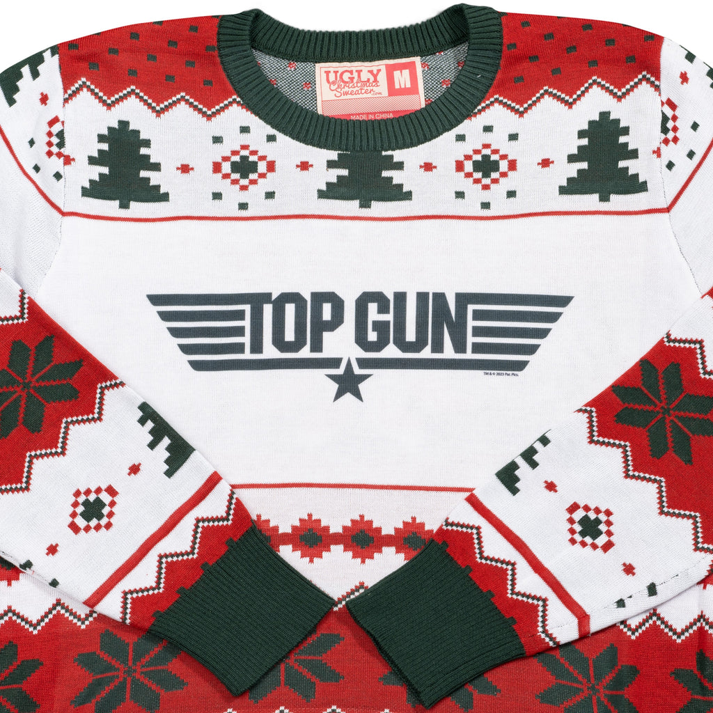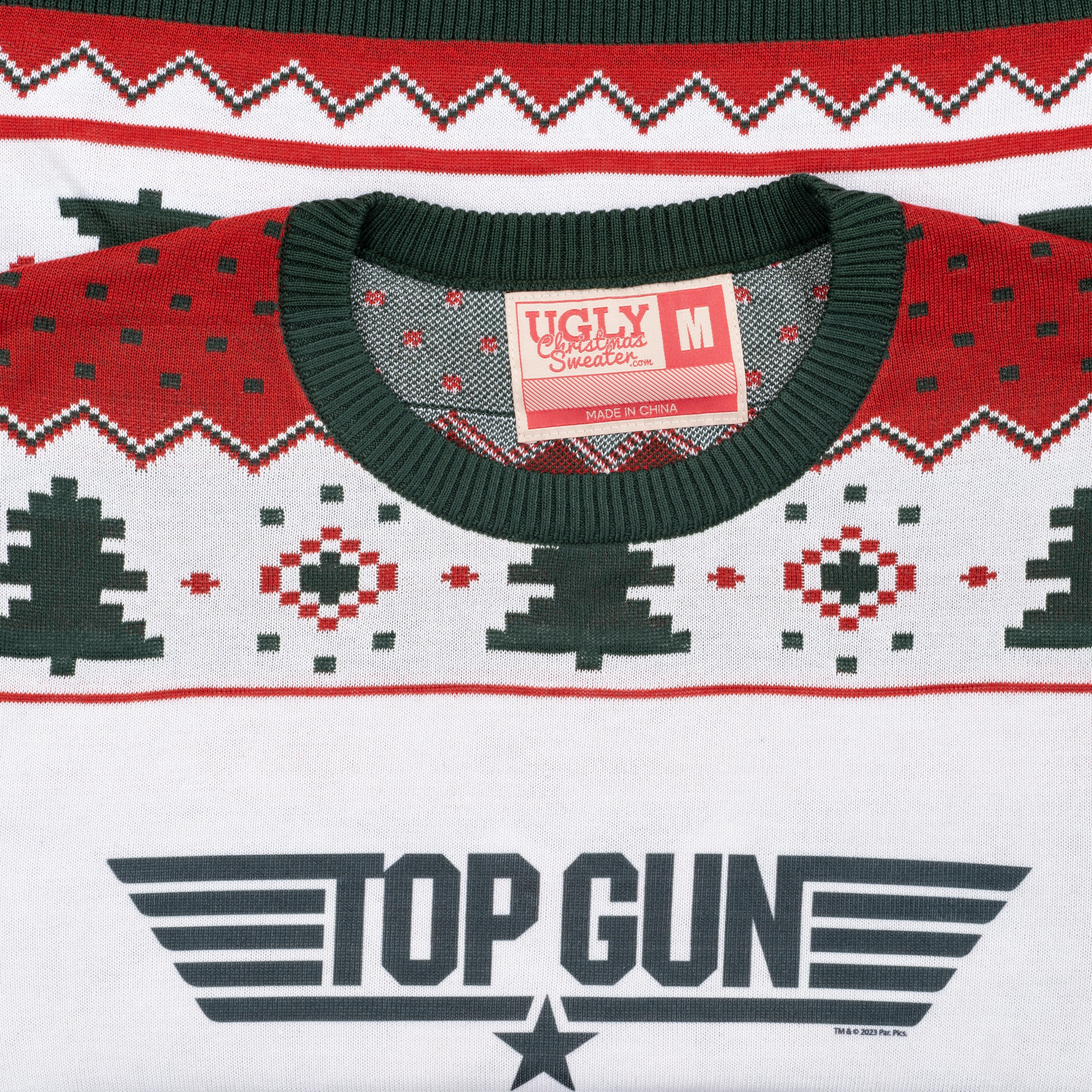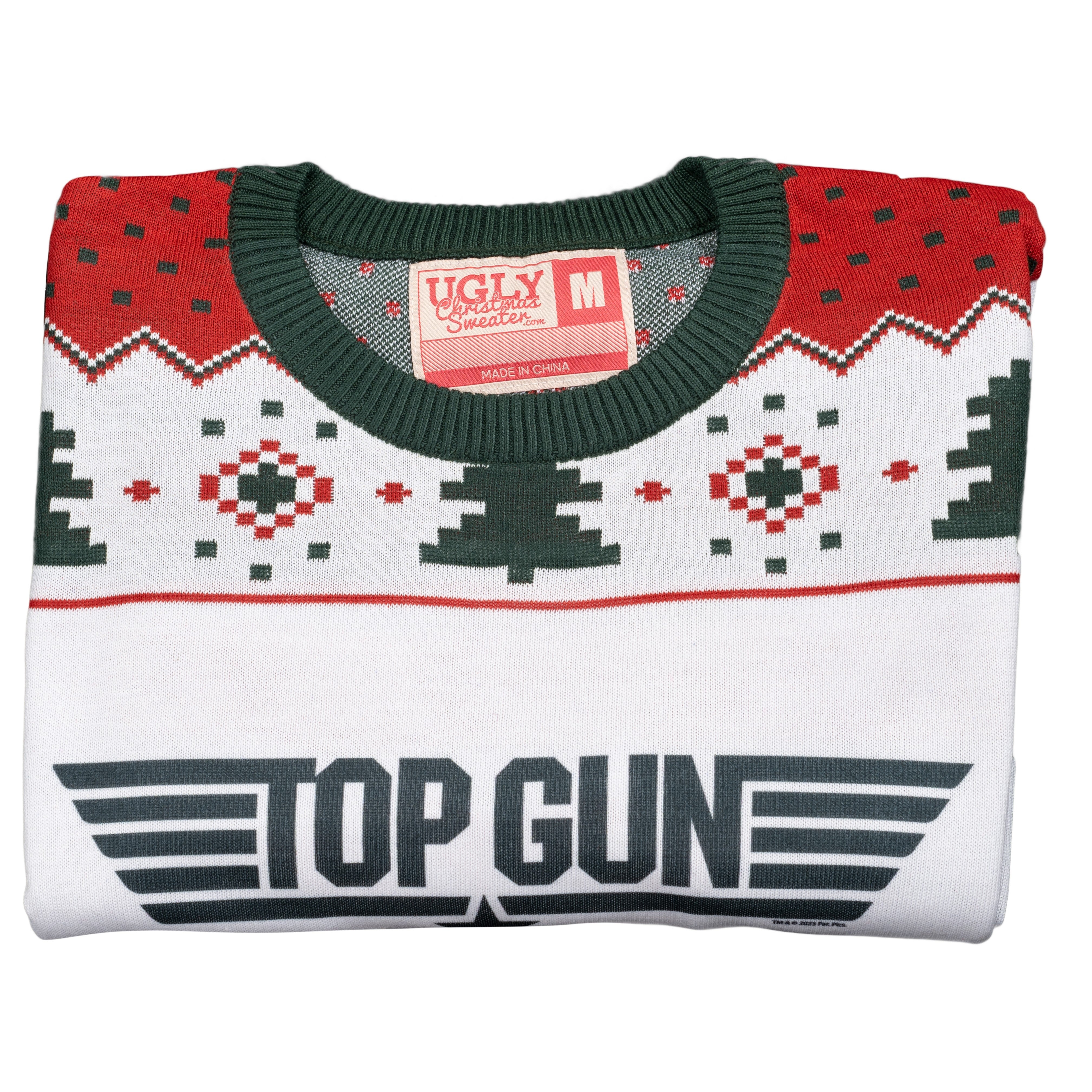 Deck the hall with F-16 fighter jets this holiday season. Now fans of the 1980s, and the ultimate action movie of the decade, Top Gun, can celebrate their favorite movie and Christmas at the same time. Fans of Top Gun will appreciate this hilarious mashup of the Top Gun movie logo and the ugly 8-bit ugly Christmas pattern. What makes this Top Gun movie ugly Christmas sweater so much fun is that it's soft, comfortable, and super stylish for the holiday season parties that are coming up.