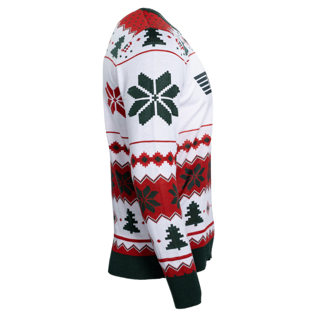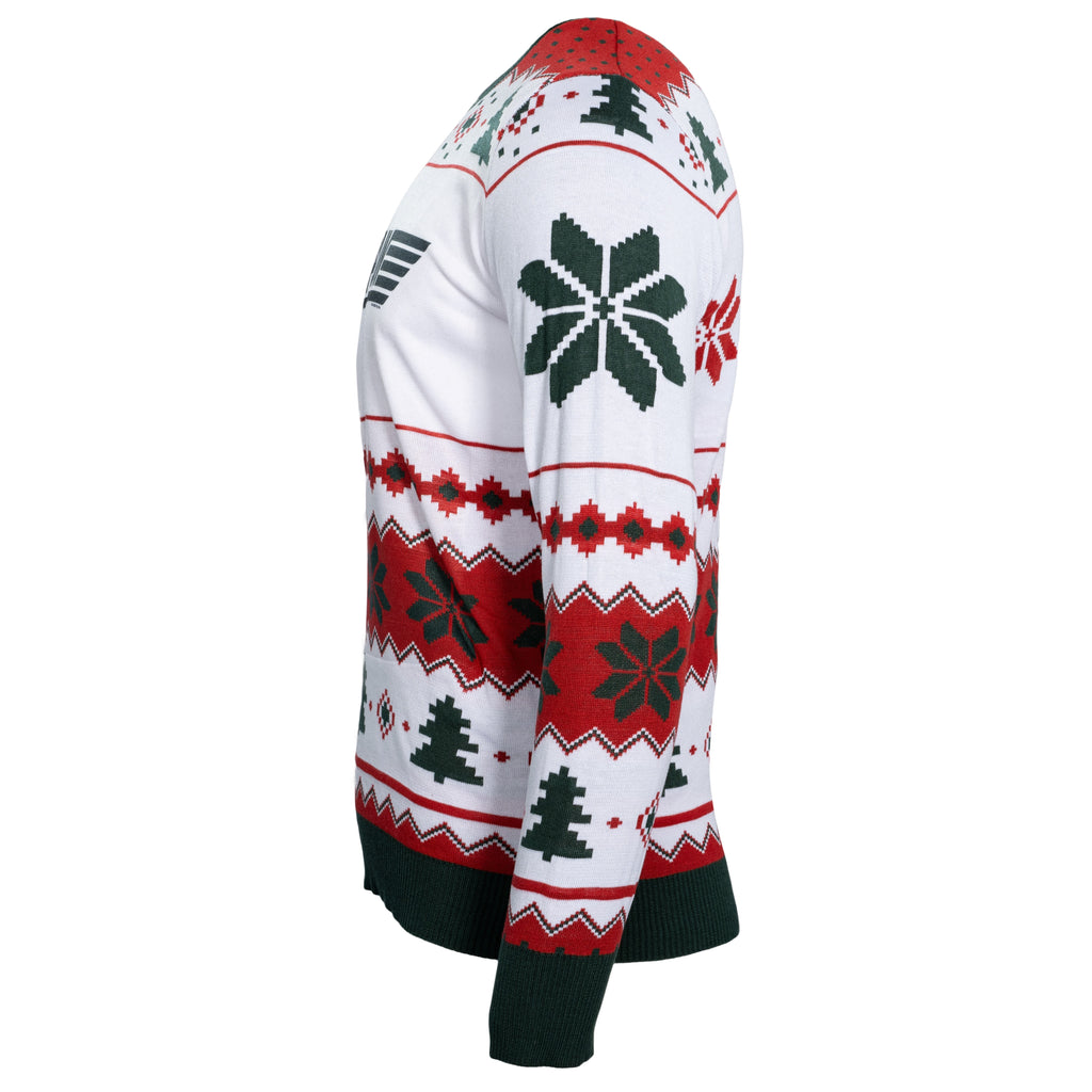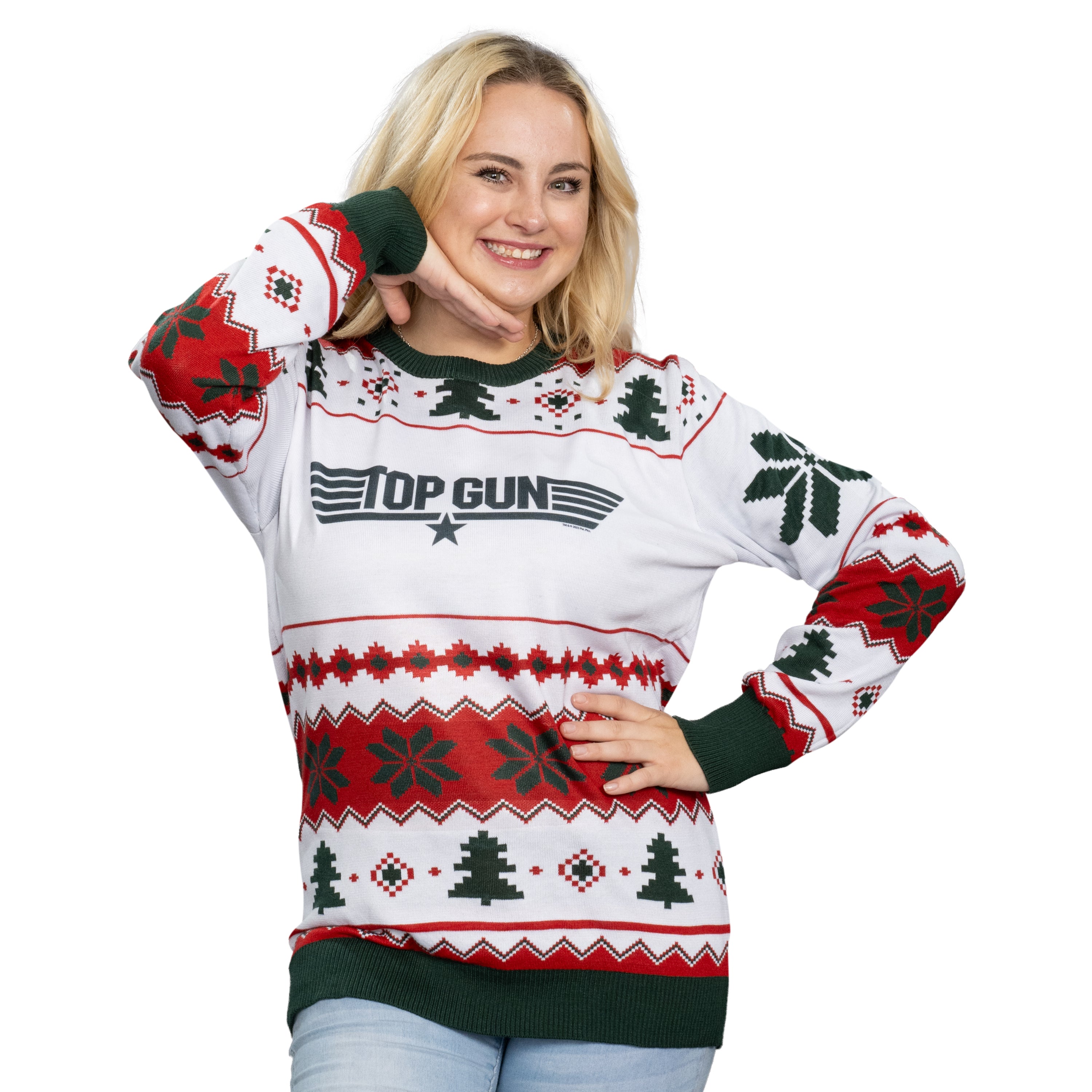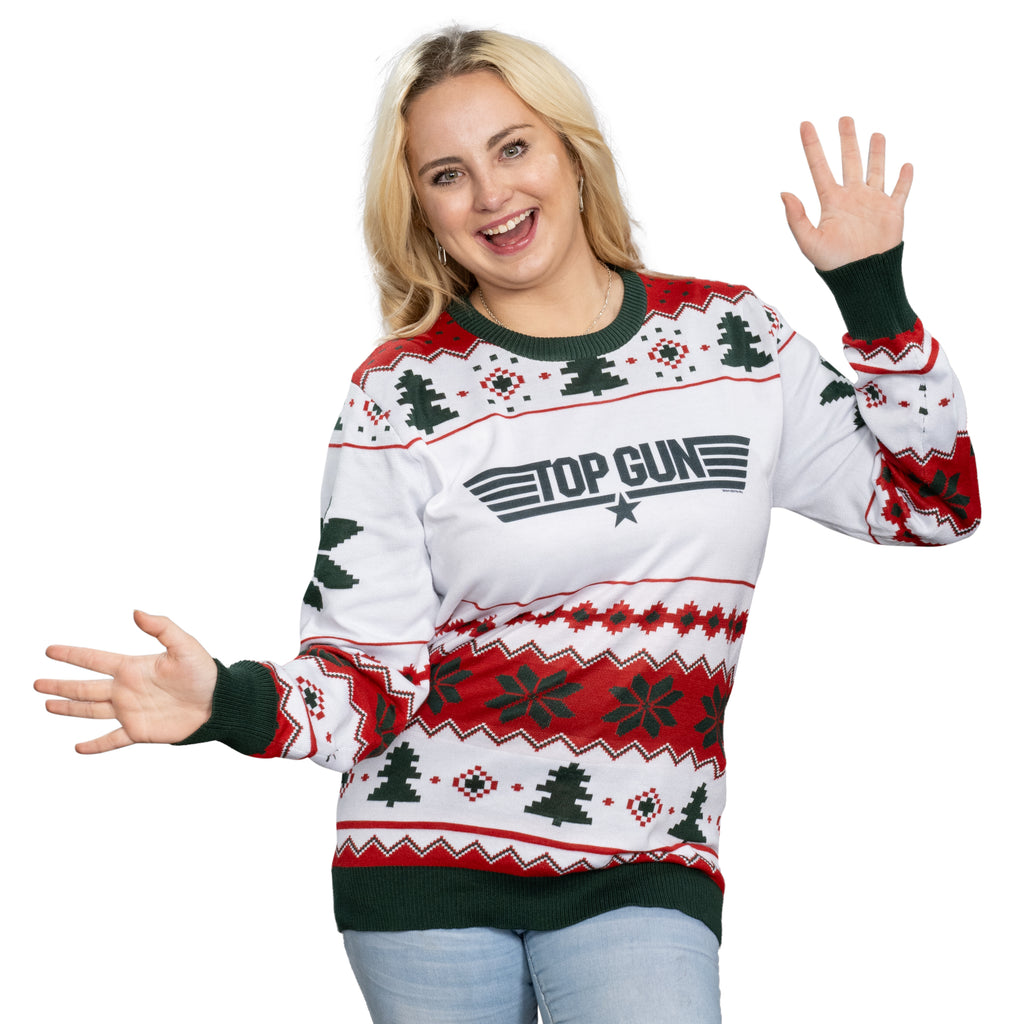 Deck the hall with F-16 fighter jets this holiday season. Now fans of the 1980s, and the ultimate action movie of the decade, Top Gun, can celebrate their favorite movie and Christmas at the same time. Fans of Top Gun will appreciate this hilarious mashup of the Top Gun movie logo and the ugly 8-bit ugly Christmas pattern. What makes this Top Gun movie ugly Christmas sweater so much fun is that it's soft, comfortable, and super stylish for the holiday season parties that are coming up.