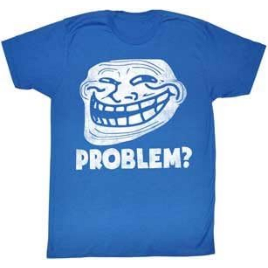 Show off your sense of humor with our Troll Face Problem? Adult Blue T-shirt! This comfortable and stylish shirt is perfect for anyone who loves to bring a smile to people's faces. Wear it and spread joy wherever you go!