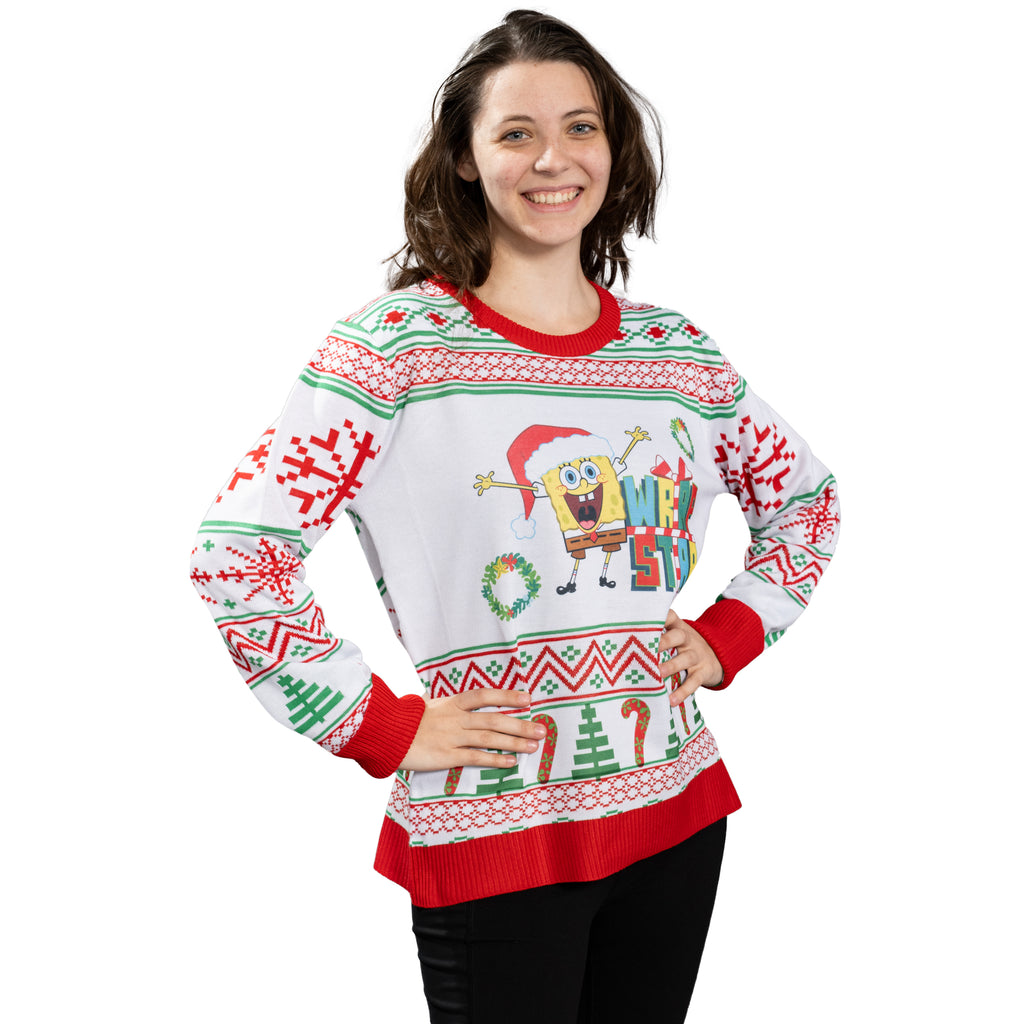 Whenever Spongebob has an opportunity to entertain the masses he usually takes it, and if you're looking for a fun way this holiday season to entertain your coworkers, friends, and family at your next holiday party, then wearing this Spongebob ugly Christmas sweater might be exactly what you'll need to wear to put a smile on everyone's holiday-hungry faces!
